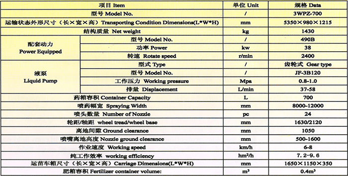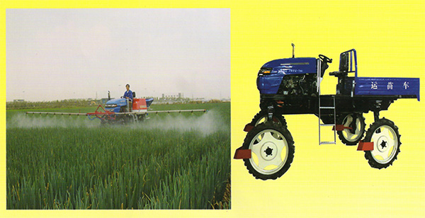 該機(jī)由我公司自行設(shè)計(jì)制造,含有多項(xiàng)技術(shù),配套性能先進(jìn)的多缸大馬力柴油機(jī),采用高地隙四輪驅(qū)動(dòng),選擇大容量藥箱、進(jìn)口防地漏噴頭,噴桿電動(dòng)折疊,并可選配撒肥裝置。廣泛適用于小麥、玉米、水稻、棉花、大蔥、大姜等大面積糧食與經(jīng)濟(jì)作物植保和撒肥使用,卸下藥箱還可用作水稻等秧苗運(yùn)輸車使用。